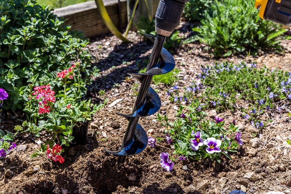 Power Planter’s augers come in sizes ranging from two to nine inches in diameter. The 2- and 3-inch diameter augers can be powered by a regular 18V/20V cordless drill. They come in lengths ranging between 7 inches and 48 inches and are designed for planting flowers and creating perfectly uniform holes.