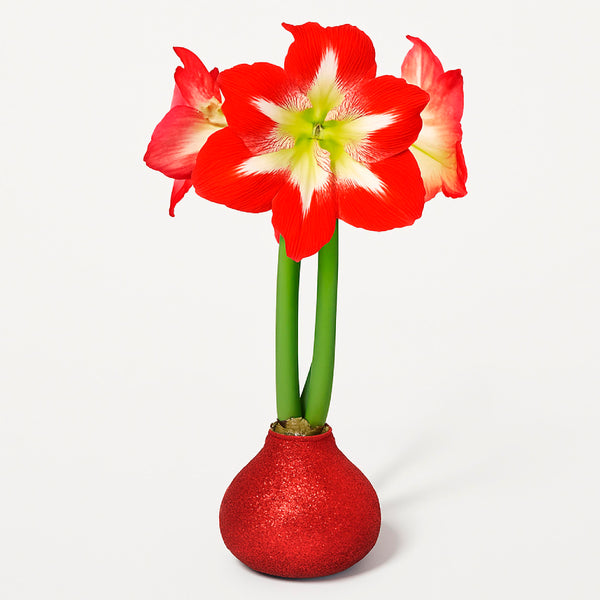 Revelation Waxed Amaryllis Bulb – Red & Silver Glitter