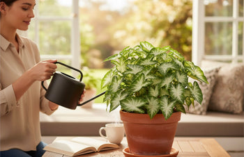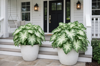 Caladium Water's Edge is a fancy-leaved white caladium with a distinctive white center. This lovely caladium is from Classic CEO Robert Hartman's breeding and development program. Water's Edge is intermediate in height and upright in habit. Water's Edge can handle full sun to partial-sun locations. This is a beautiful caladium addition to your patio or landscape.