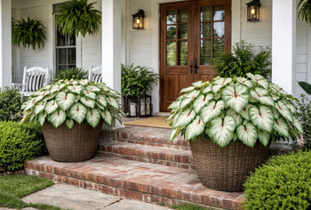 Caladium White Delight, a 2008 introduction, is a beautiful lance-leaved (strap) variety that tolerates full sun. Excellent variety for pots, planters & baskets. A creation of Dr. Robert Hartman, Classic Caladiums President.