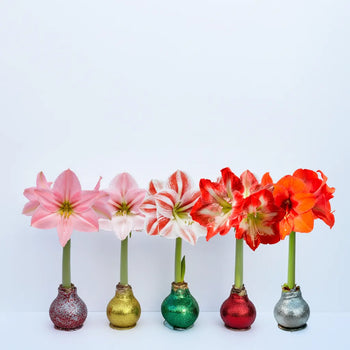 These premium waxed bulbs need no soil, no watering, and no container. Just a spot in bright, indirect light. In 4–8 weeks, each bulb flowers twice, sending up tall stalks with showy blooms,