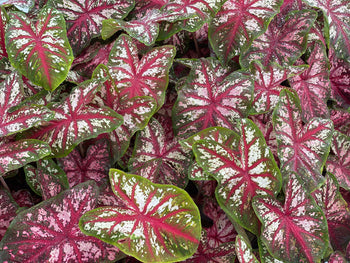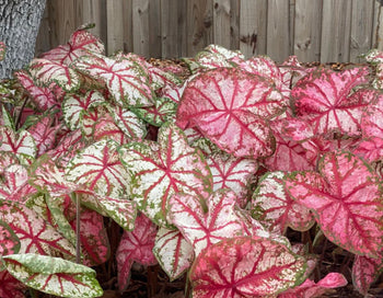 Bottle Rocket, part of the Heart to Heart caladium series with Proven Winners, is distinctive caladium that does really well in full sun. With its leaves featuring bright red veins surrounded by white splotches, it will stand out in your garden. Bottle Rocket was named a "People's Choice Winners" and "Best of the Best" at the 2018 Trial Gardens at UGA.