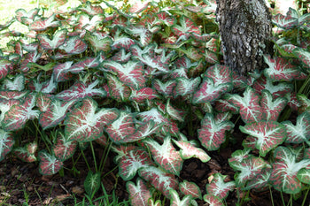 Dusk to Dawn (formally known as Creamsickle) is an introduction from Classic's breeding program and a customer favorite. Dawn to Dusk caladiums features a cream-white center with red splotches and a green margin. Because it tolerates full sun, it will do well in a sunny location.