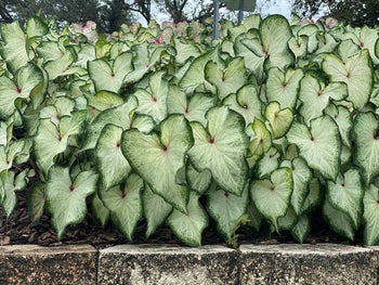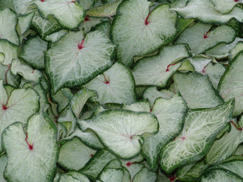 Caladium White Delight, a 2008 introduction, is a beautiful lance-leaved (strap) variety that tolerates full sun. Excellent variety for pots, planters & baskets. A creation of Dr. Robert Hartman, Classic Caladiums President.