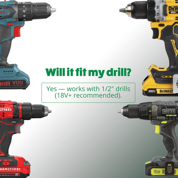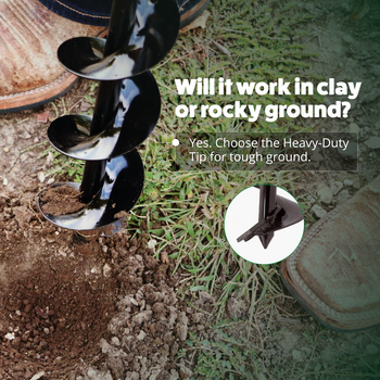 The extended-length bulb auger will fit ½-in drills. For tougher soil conditions like sand, clay, and loose, rocky material, choose the “Heavy Duty” option which includes a heavy-duty tip made from military-grade abrasion-resistant material.