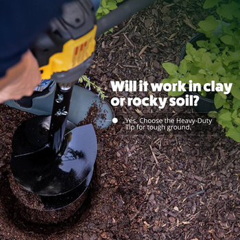 Heavy Duty is the most rugged and versatile option for the gallon pot & post hole auger. Use the dropdown menu above to choose the “Heavy Duty – Clay, Rocky, or Professional Use” option. The heavy-duty digging tip is a replaceable auger tip that will help you tackle the most challenging digging tasks without damaging the main auger. The leading portion of the digging tip has replaceable auger blades (included with purchase). With the heavy-duty version of the gallon & post hole auger, you can complete tasks that would put other tools into early retirement.