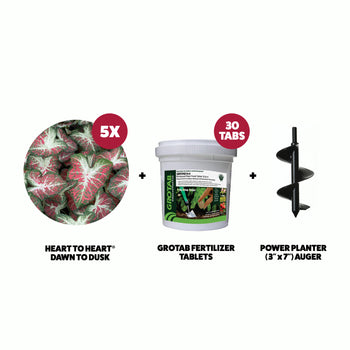 This bundle makes bringing color and texture to your garden a breeze. Use our Bulb Planting Auger & Bedding Plant Tool to plant the bulbs, and GroTab Fertilizers to make sure your Heart to Heart® Dawn to Dusk grow strong and vibrant.