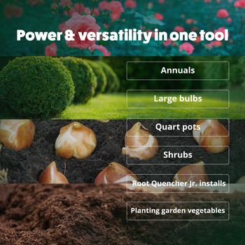 Experience the unique combination of power and versatility with Laura's Edition of our 3" x 36" Extended Length Bulb Auger. This lighter version of our standard extended length bulb auger allows you to plant a range of bulbs and 3-inch to 5-inch potted plants effortlessly, without the strain of bending or kneeling.