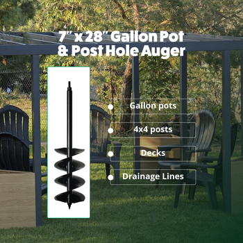 - Power Planter Gallon Pot & Post Hole Auger (7 in. x 28 in.) – Perfect for larger gardening projects, this auger facilitates planting of gallon-sized plants and digging holes for bigger structures like fence posts. It's also useful for creating trenches for drainage and irrigation in landscaping projects.