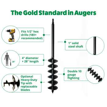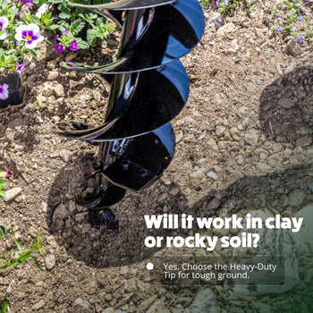 Heavy Duty is the most rugged and versatile option for this auger. Use the dropdown menu above to choose the “Heavy Duty – Clay, Rocky, or Professional Use” option. The heavy-duty hex adaptor is a replaceable auger tip that will help you tackle the most challenging digging tasks without damaging the main auger and is included when you purchase the Heavy Duty option. The leading portion of the digging tip has replaceable auger blades. This allows for an easier and more cost-efficient way to keep your equipment performing in top condition.
