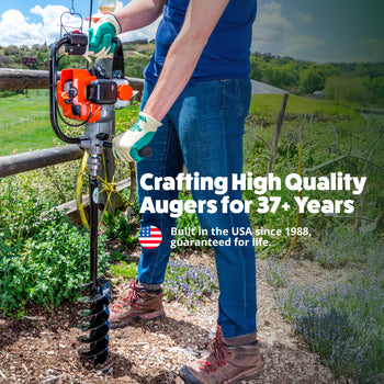 Powerful and professional, our Large Bulb Auger is the best tool for planting bulbs and digging post holes quickly and efficiently. This auger measures 4 inches in diameter by 28 inches long, and it includes a heavy-duty, 1-inch shaft made of 100% steel. Choose between an auger for Light-Medium Duty work for home use or Heavy Duty work for professional use.