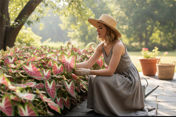Dusk to Dawn (formally known as Creamsickle) is an introduction from Classic's breeding program and a customer favorite. Dawn to Dusk caladiums features a cream-white center with red splotches and a green margin. Because it tolerates full sun, it will do well in a sunny location.